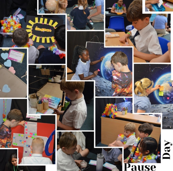 We provide quiet spaces such as our reflection area and provide guided opportunities for children to pause, reflect, and develop their own sense of identity and spirituality. Our children benefit from whole school pause days looking at a particular spiritual theme.